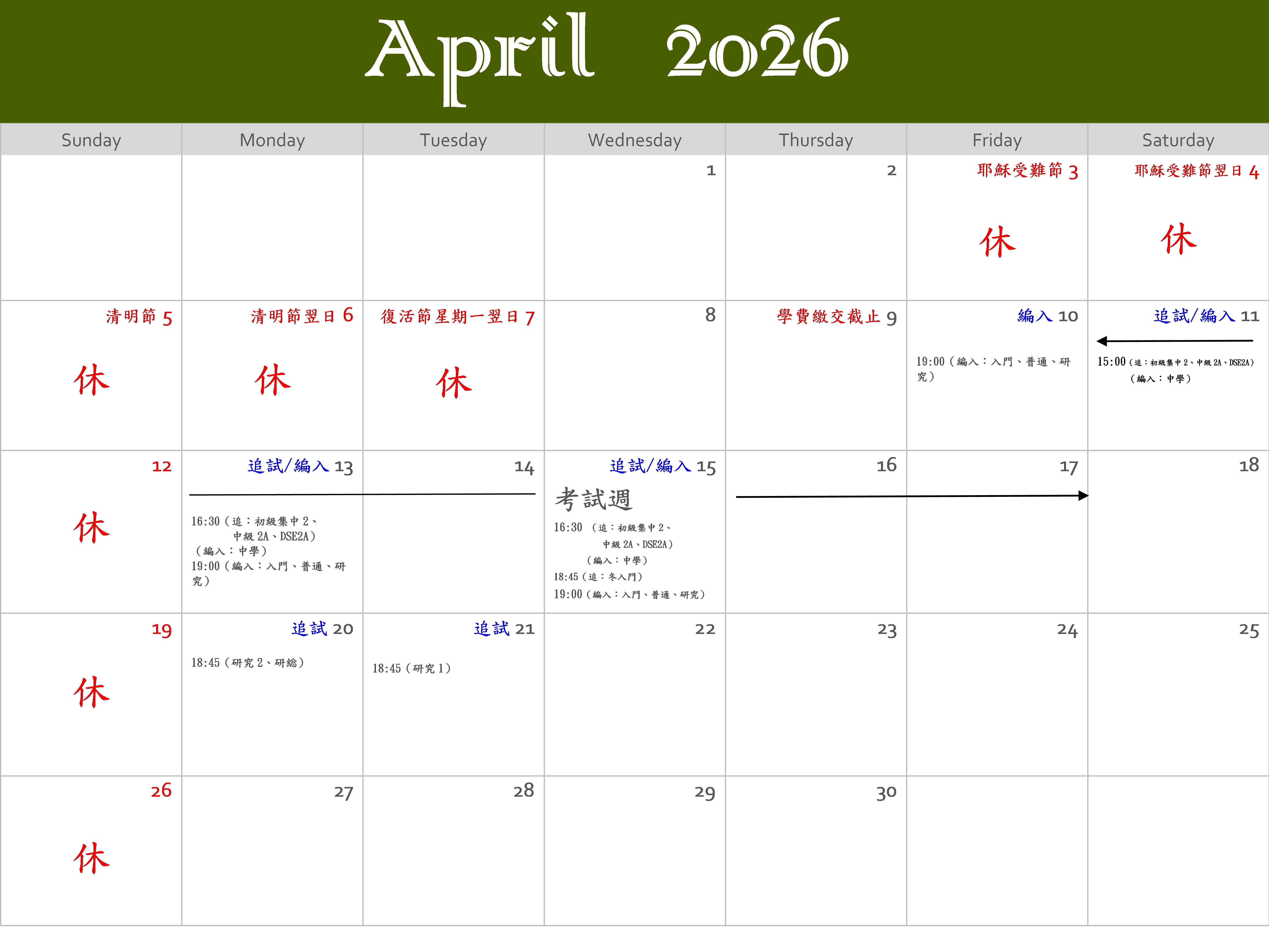 2026年4月行事表