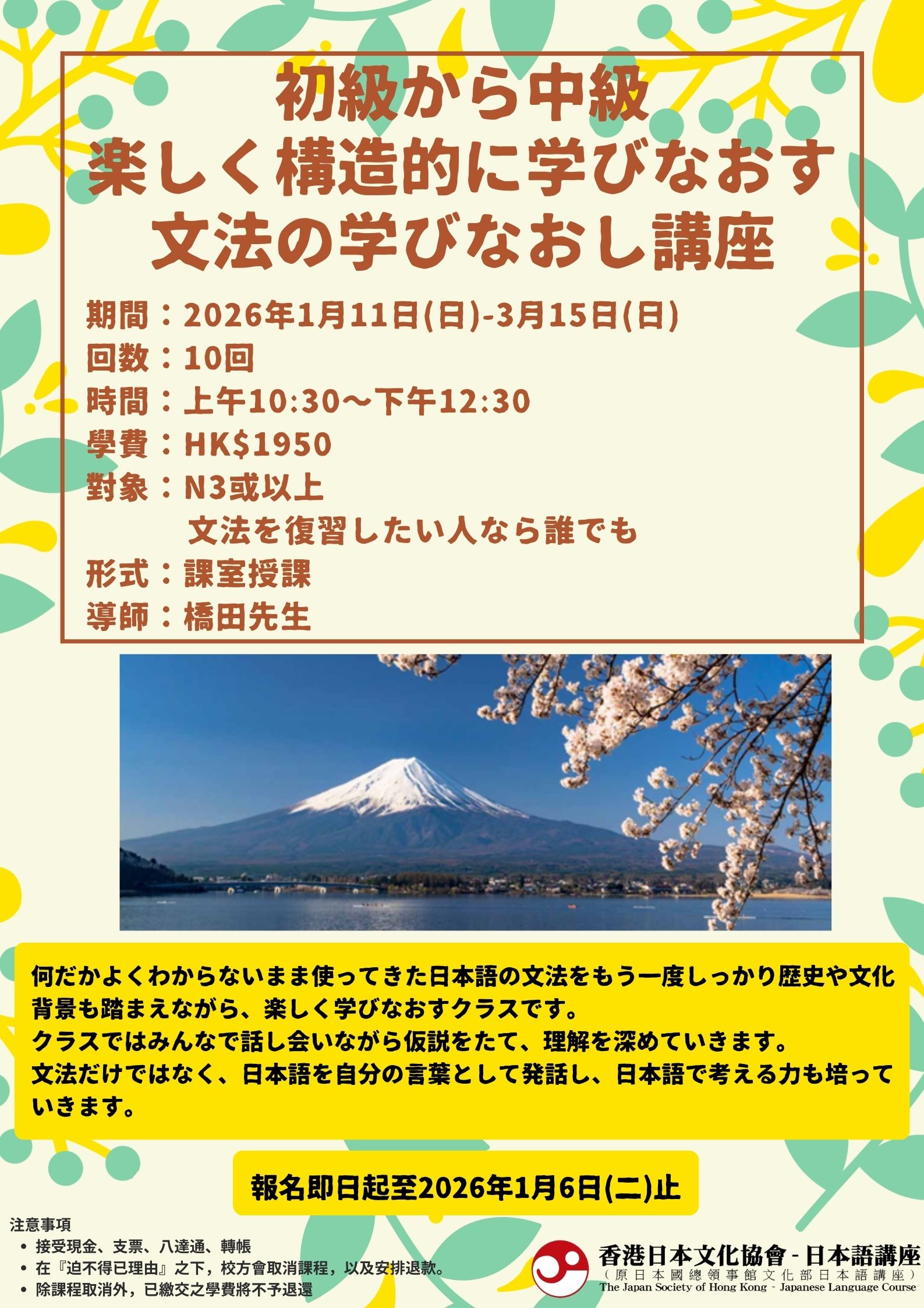 這是一門課程,讓大家在重新學習日本語文法的同時,不僅僅停留在模糊使用的狀態,而是結合歷史與文化背景,愉快地再次深入理解。 在課堂上,大家會透過討論提出假設,並逐步加深理解。 不只是文法的學習,還會培養用日語作為自己的語言來表達,以及用日語思考的能力。