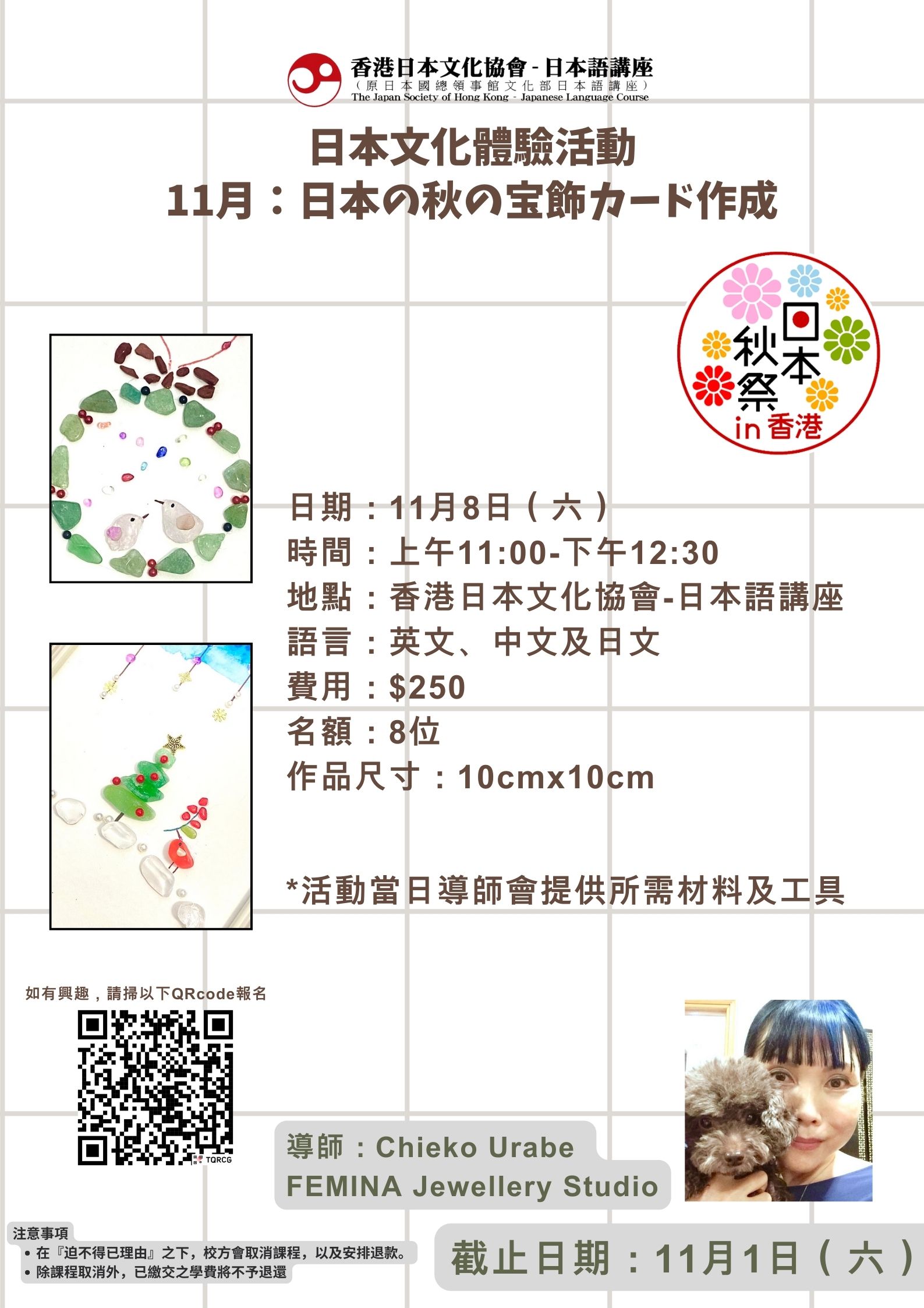 日本文化體驗活動 11月:日本の秋の宝飾カード作成