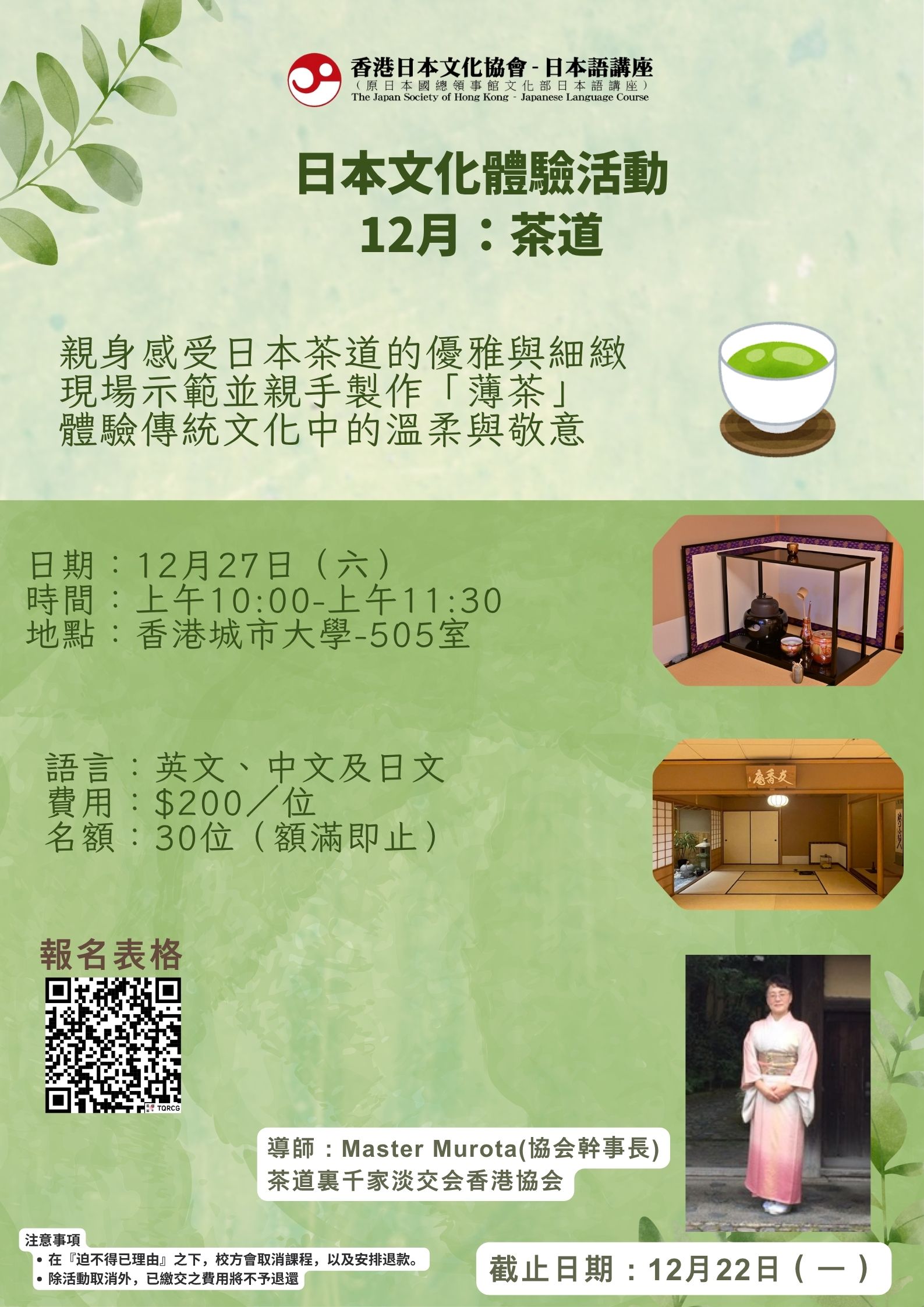日本文化體驗活動 12月:茶道