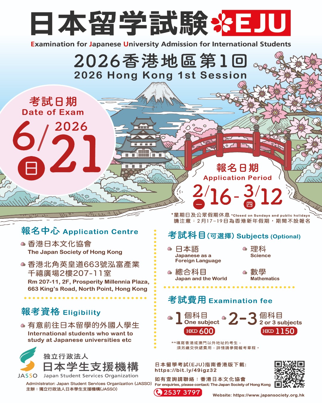了解更多報考詳情及下載日本留學考試指南,請瀏覽本會網頁:https://www.japansociety.org.hk/tc/報考及應試須知